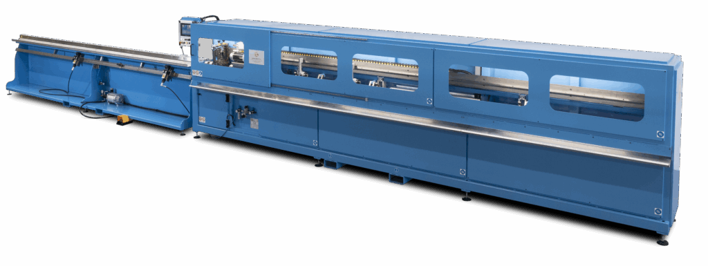 La testa di alettatura si fermerà nella posizione di carico indicata dall’interfaccia operatore, in modo da dare la corretta distanza tra la fine del tubo e la prima aletta.
