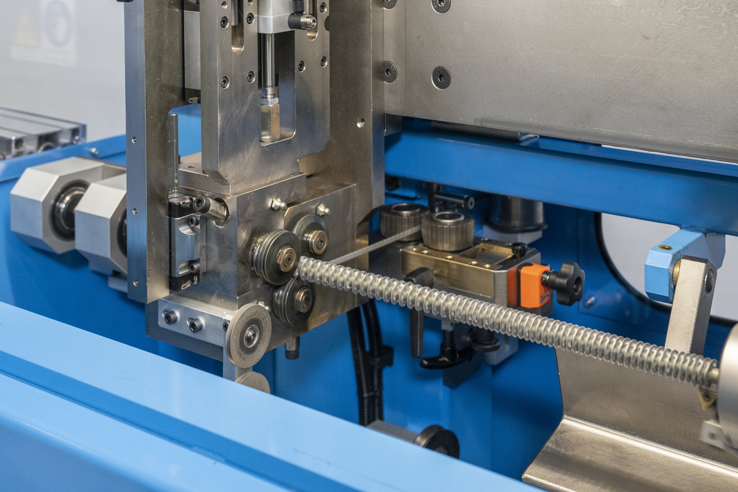 Per soddisfare diverse esigenze di produzione, la macchina può essere equipaggiata con kit di attrezzamento aggiuntivi per alettare resistenze di diversi diametri e con nastri di diverse larghezze. Inoltre, l’operatore può impostare e richiamare facilmente il passo delle alette e i principali parametri di lavoro direttamente dal pannello operatore, senza la necessità di attrezzare la macchina.