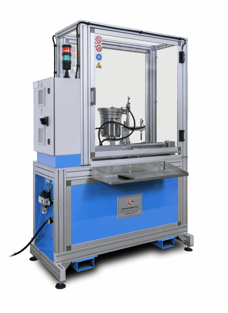 La montatappi inferiore prodotta da CSM MACHINERY è studiata per montare, in automatico, i tappi in plastica sui perni terminali inferiori ed è pensata per automatizzare il processo produttivo in linea con le esigenze di produzione attuali.
