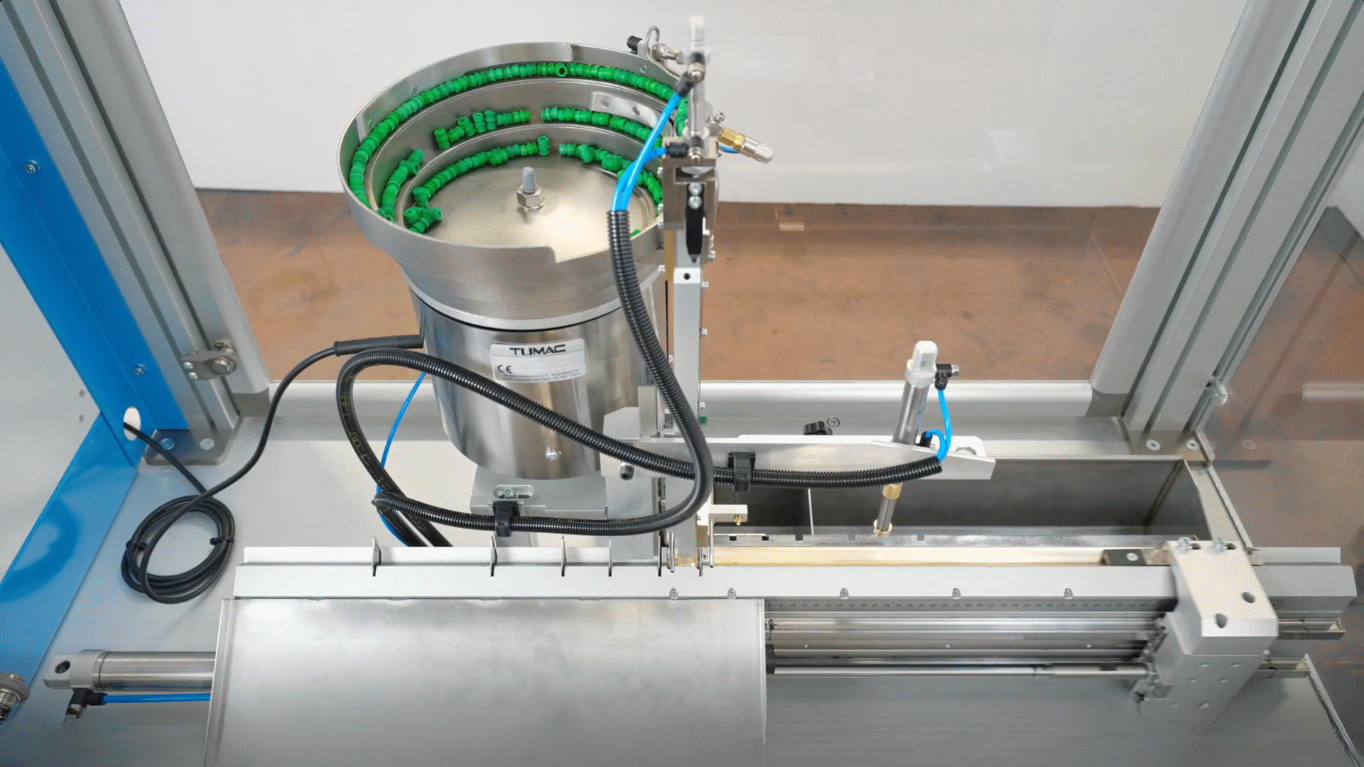 ALIMENTATORE AUTOMATICO VIBRANTE DEI TAPPI IN PLASTICA