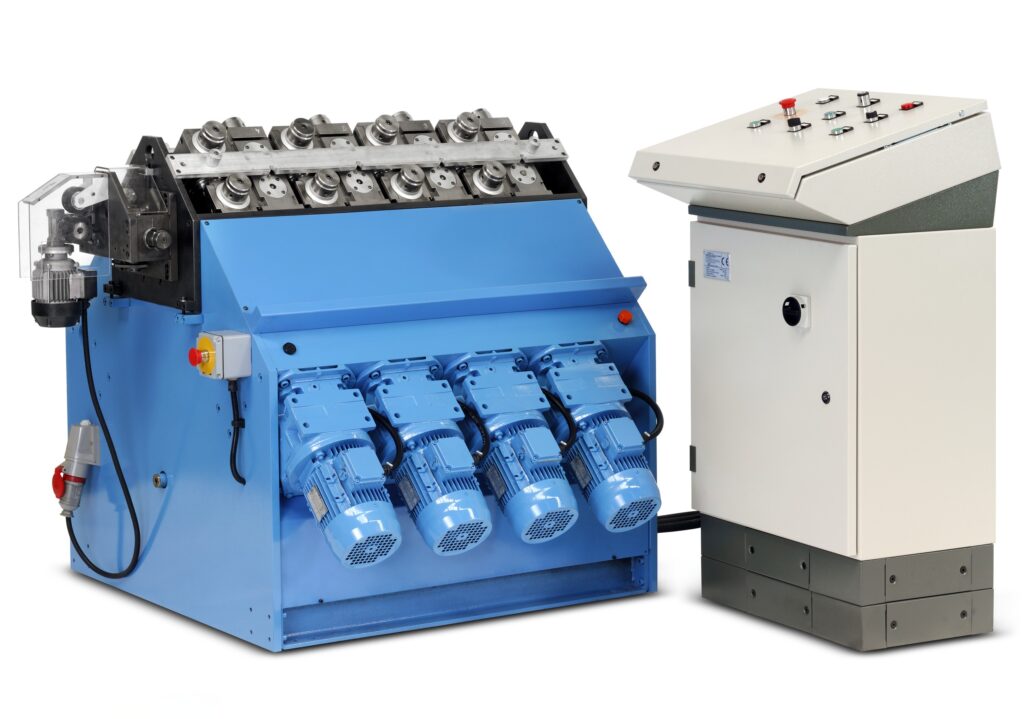 La versione a 8 stazioni dispone di 8 coppie di rulli, di cui 6 con funzione di riduzione e 2 con funzione di calibratura.