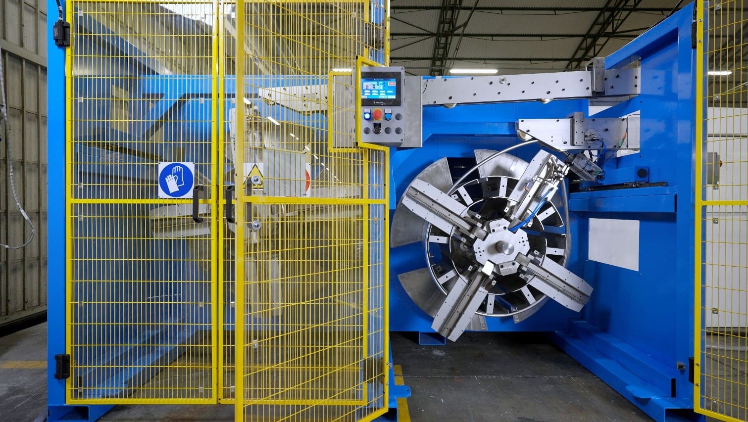 Questo dispositivo è progettato per essere posto in linea con la profila, per far sì che il tubo saldato possa essere avvolto in bobina. Il tubo viene avvolto da destra a sinistra da un braccio controllato elettronicamente. La tenuta e il posizionamento del tubo sono garantiti impostando i parametri relativi alla coppia ed alla velocità per ogni specifico diametro e spessore del tubo da produrre. Gli aspi avvolgitori sono dotati di due tamburi di avvolgimento, in modo tale che la macchina non debba essere fermata al termine dell’avvolgimento. Una volta terminata una bobina, l’operatore sposta l’estremità del tubo tagliato all’interno del secondo braccio per partire con l’avvolgimento sul secondo tamburo. Una volta terminata la prima bobina, l’operatore la fissa con delle fascette e la rimuove dal tamburo.