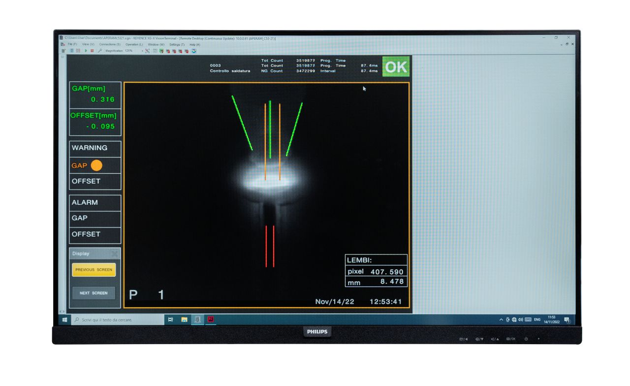 UNITÀ DI FORMATURA E SALDATURA con videocamera per il monitoraggio dell’arco di saldatura.