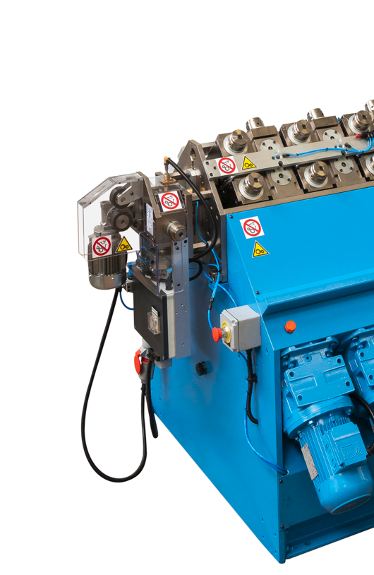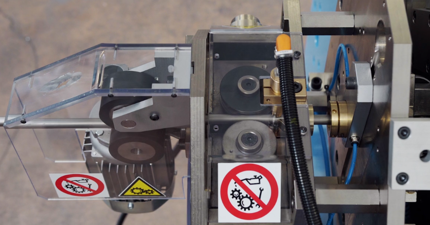 Il sistema di marcatura assiale utilizza caratteri intercambiabili, offrendo la flessibilità di dati identificativi essenziali come valori di tensione (V) e potenza (W), tra gli altri. Il processo di marcatura avviene in modo fluido e continuo: la resistenza, appena uscita dal laminatoio di riduzione, passa attraverso una coppia di rulli non motorizzati. Il primo rullo è predisposto con i caratteri di marcatura selezionati, mentre il secondo rullo funge da contrasto, assicurando la pressione ideale per un’incisione nitida e leggibile.