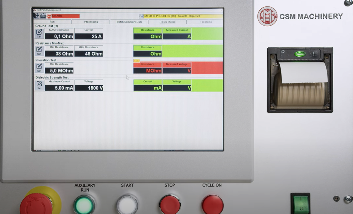 L’unità multi-test CSM MACHNERY integra in un unico modulo la possibilità di eseguire diverse tipologie di collaudo elettrico, di sicurezza e funzionale in conformità alla normativa CEI EN 60335-1 art.16-3 e 27-5.