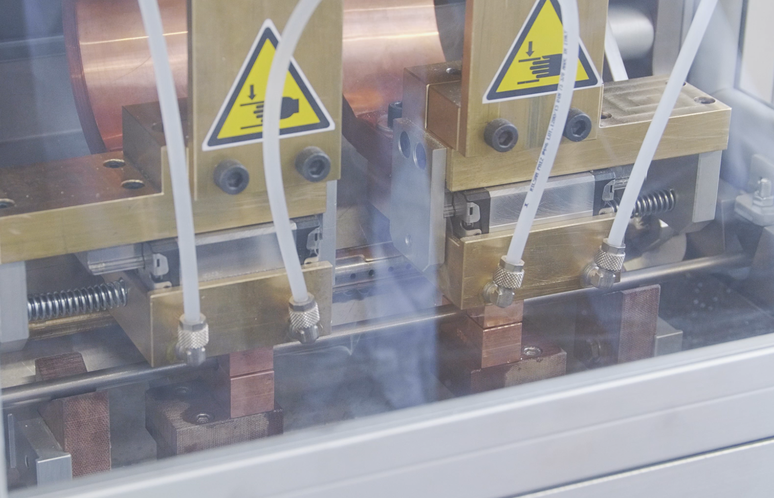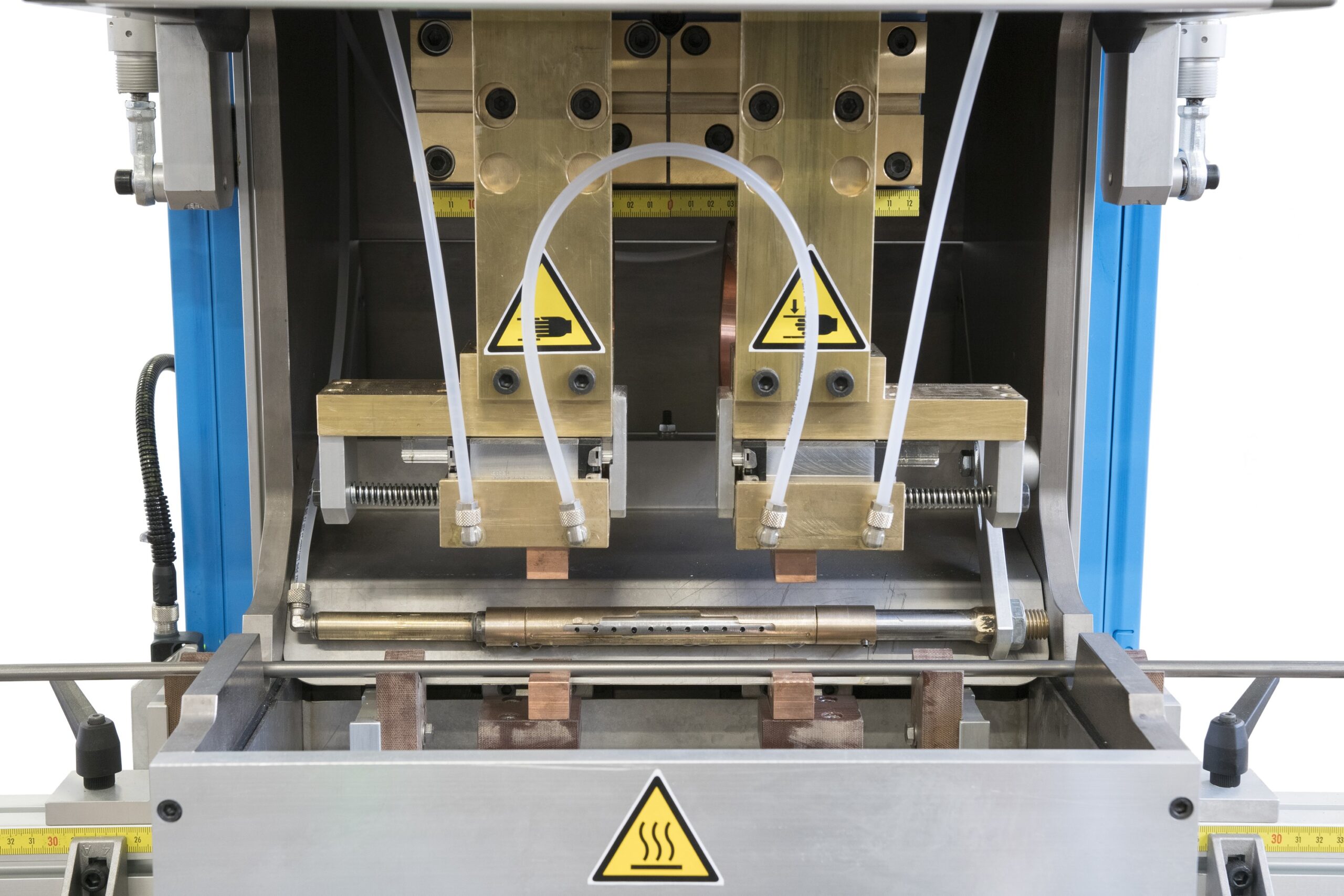 Gli elettrodi di bloccaggio semplificano ulteriormente il cambio di diametro, mentre la possibilità di spostare manualmente l’elemento consente di lavorare resistenze di diverse lunghezze.