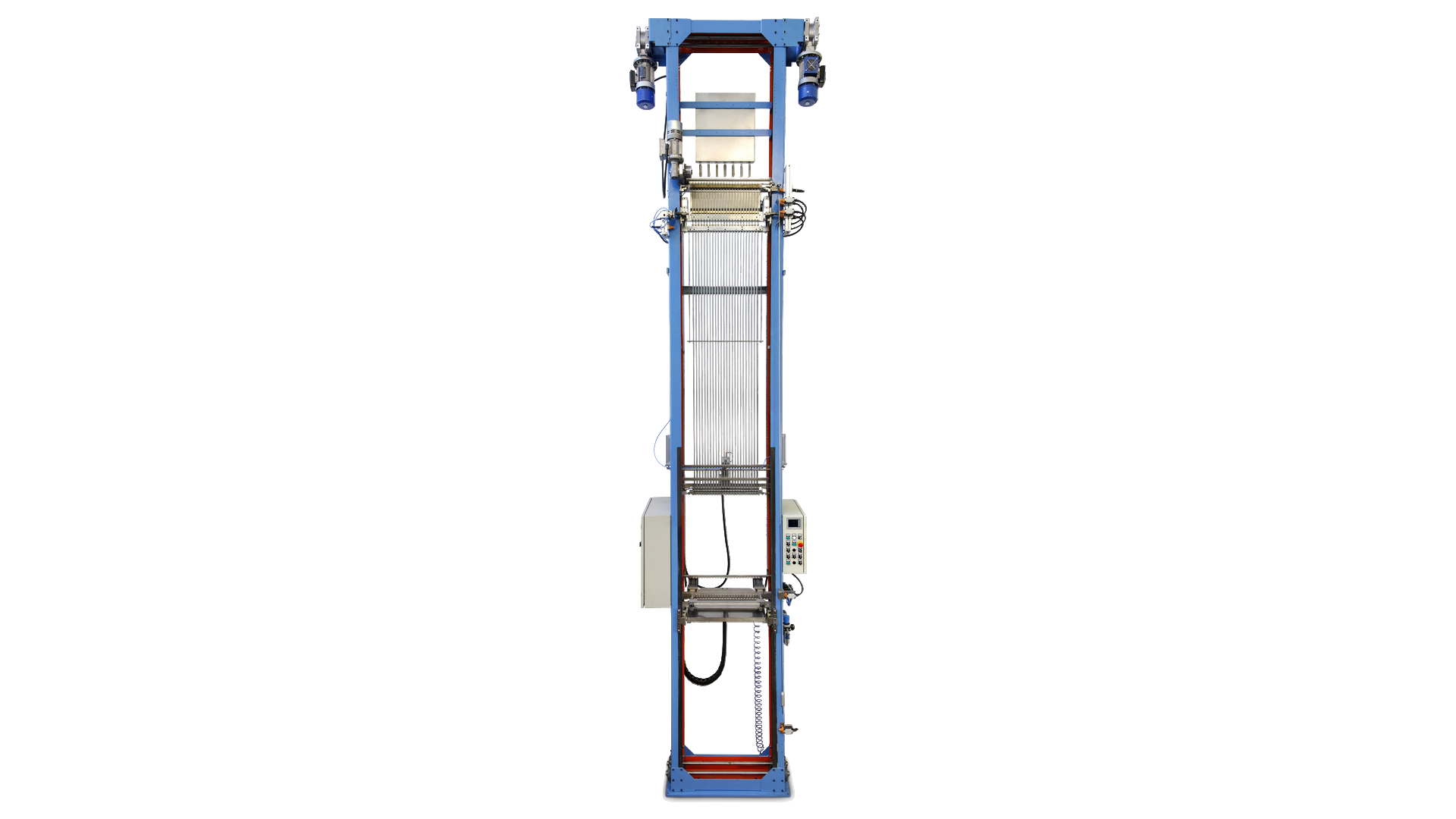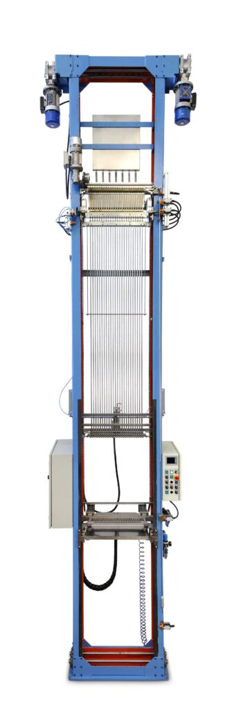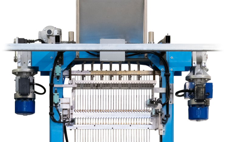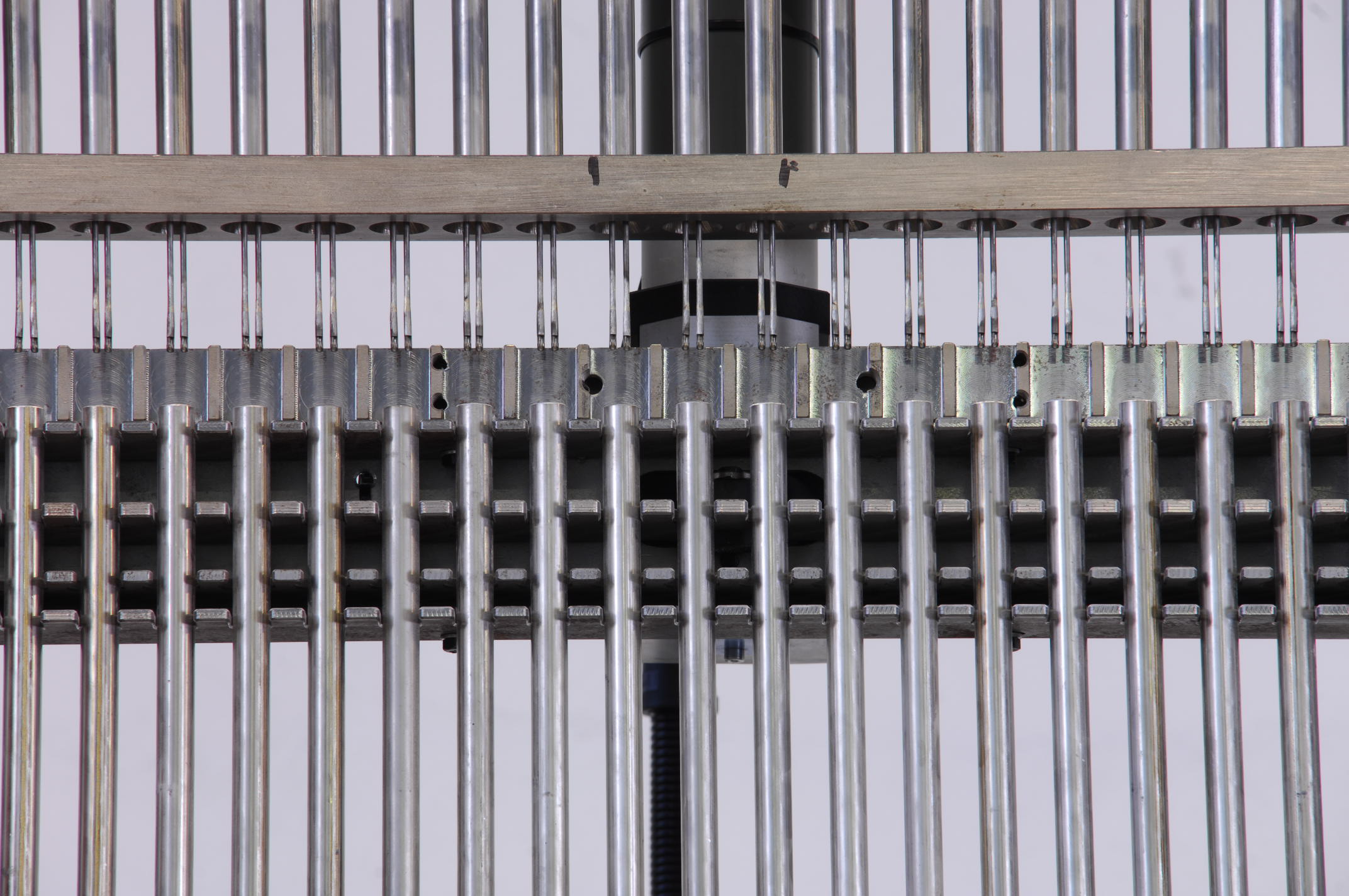 grazie ad un encoder che controlla la posizione del gruppo vibratore evitando la collisione dei perni con la barra inferiore.