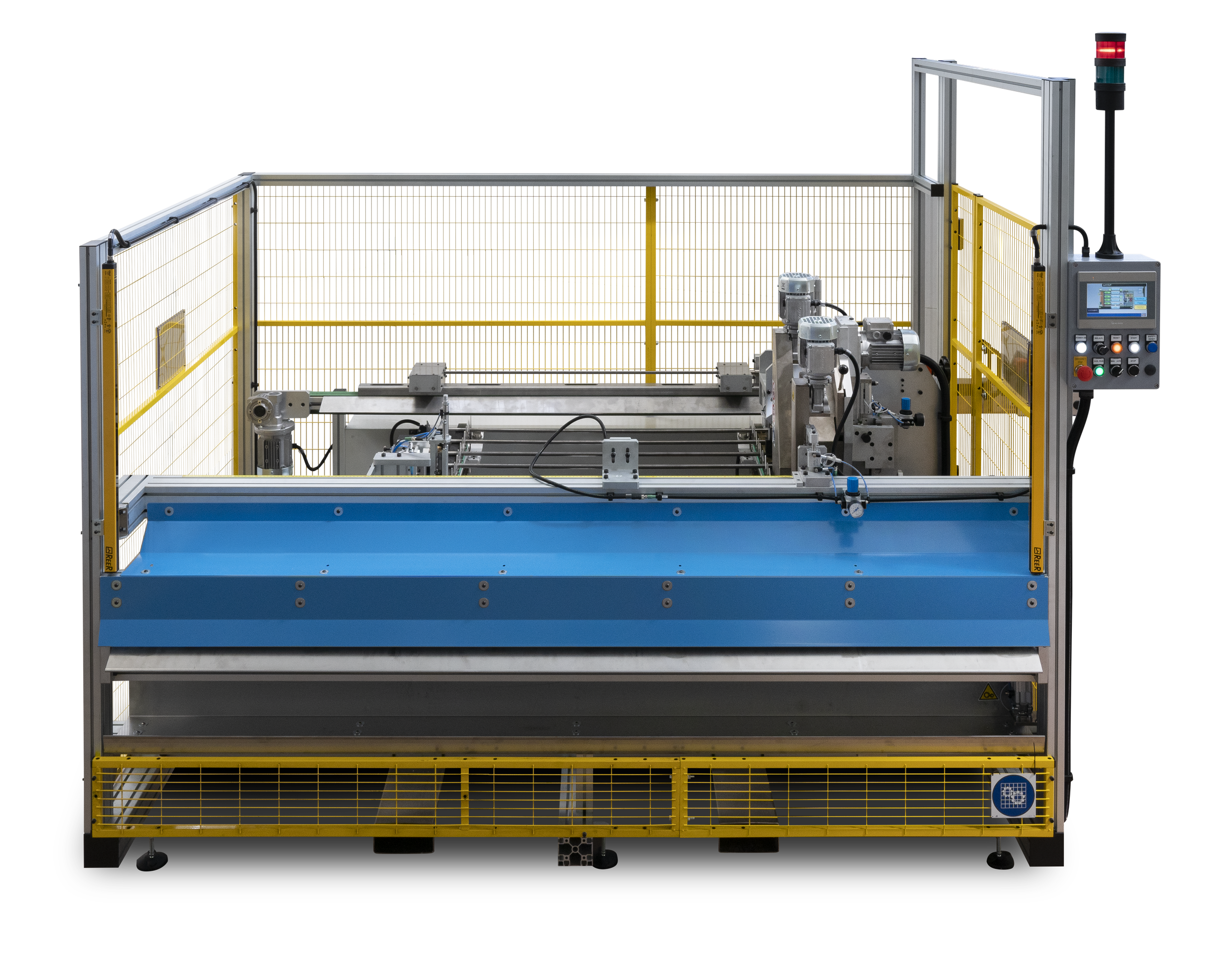 Alla fine del ciclo, il transfer scarica automaticamente, in un contenitore posto ai piedi della macchina, le resistenze elettriche e seleziona gli eventuali pezzi di scarto.