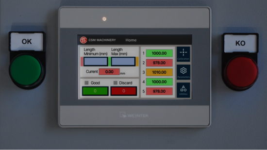 L’unità di misura in uscita dal laminatoio di CSM MACHINERY è un innovativo strumento di misurazione, in grado di valutare la lunghezza delle resistenze elettriche e riportare se queste sono conformi o meno rispetto al range indicato.